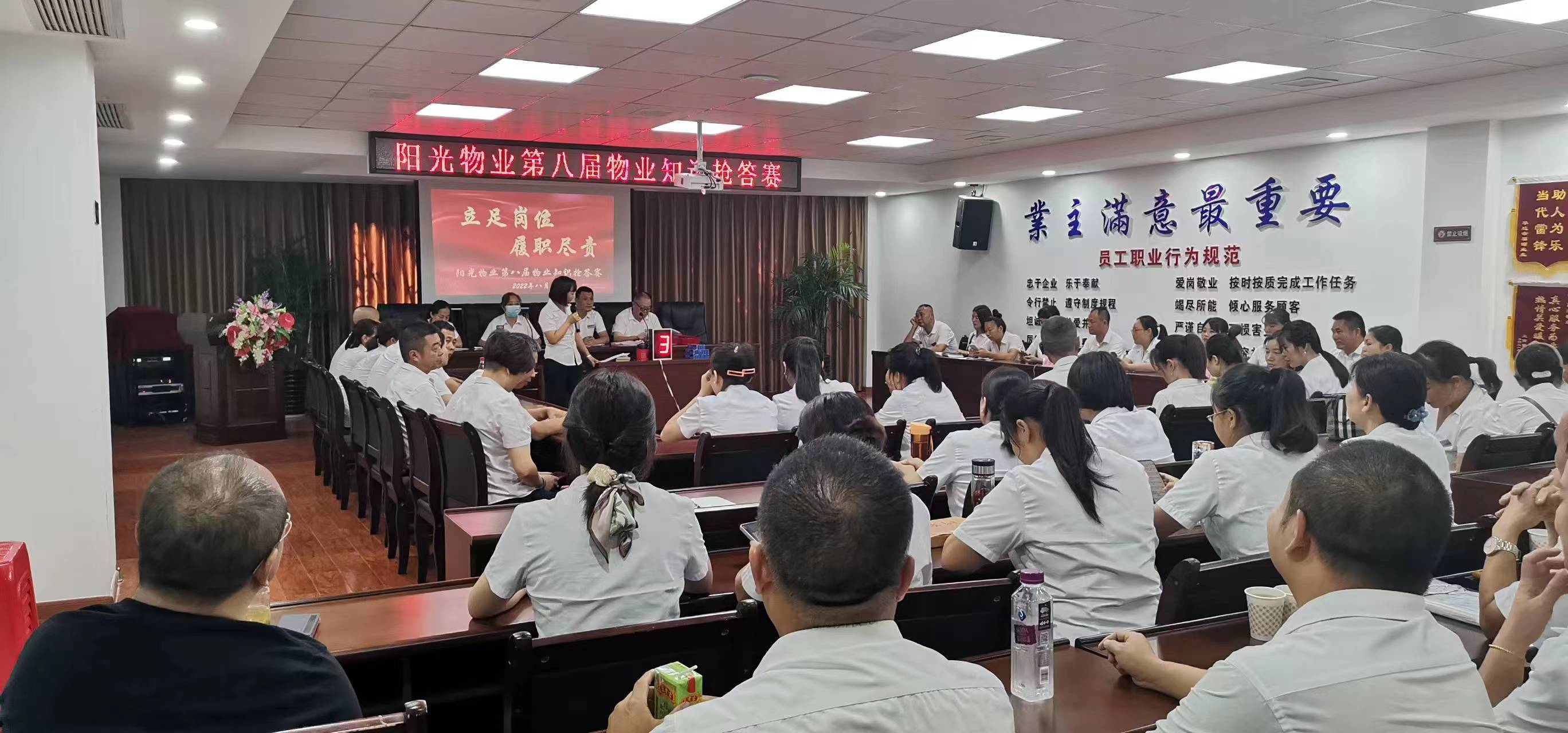 8月13日上午,陽光物業(yè)公司總部會(huì)議室傳來一陣陣熱烈的掌聲,“閉路監(jiān)控鏡頭應(yīng)根據(jù)哪些部位進(jìn)行區(qū)分?設(shè)備房每平方米需要多大的亮度?房屋的建筑主體具體包括哪些部位?”這是陽光物業(yè)、沁園春物業(yè)的全體管理人員在開展“立足崗位、履職盡責(zé)”物業(yè)管理知識搶答賽活動(dòng)。